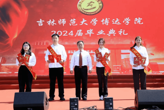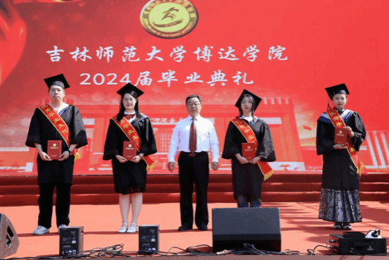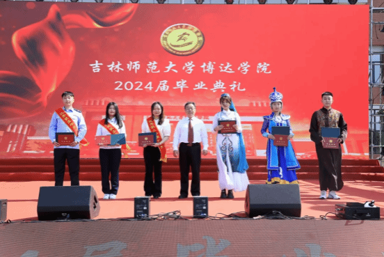 校长张勇为2024届少数民族毕业生代表张红程、王文婧、杨舒涵和优秀就业生代表庄缘、贾贺茗、郝培然颁发毕业证书及学士学位证书。