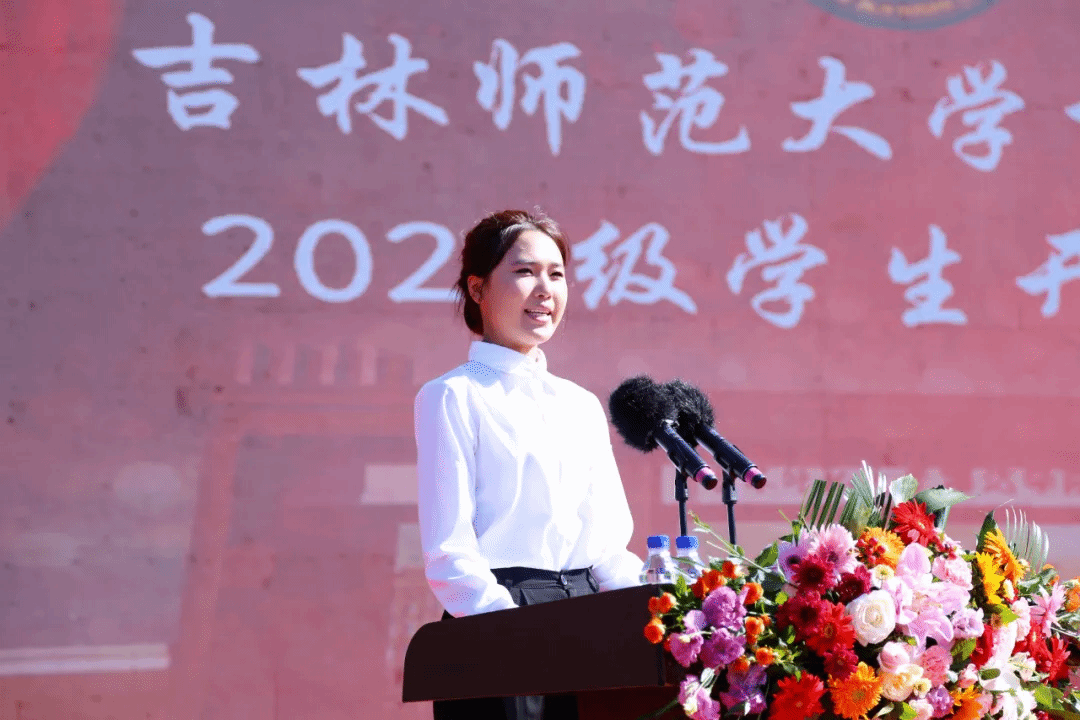 外国语学院2024级侯茗萱代表全体新生发言,立志将努力成为一名信念坚定、朝气蓬勃的博达人,将珍惜这段宝贵的时光,不负韶华,努力学习。