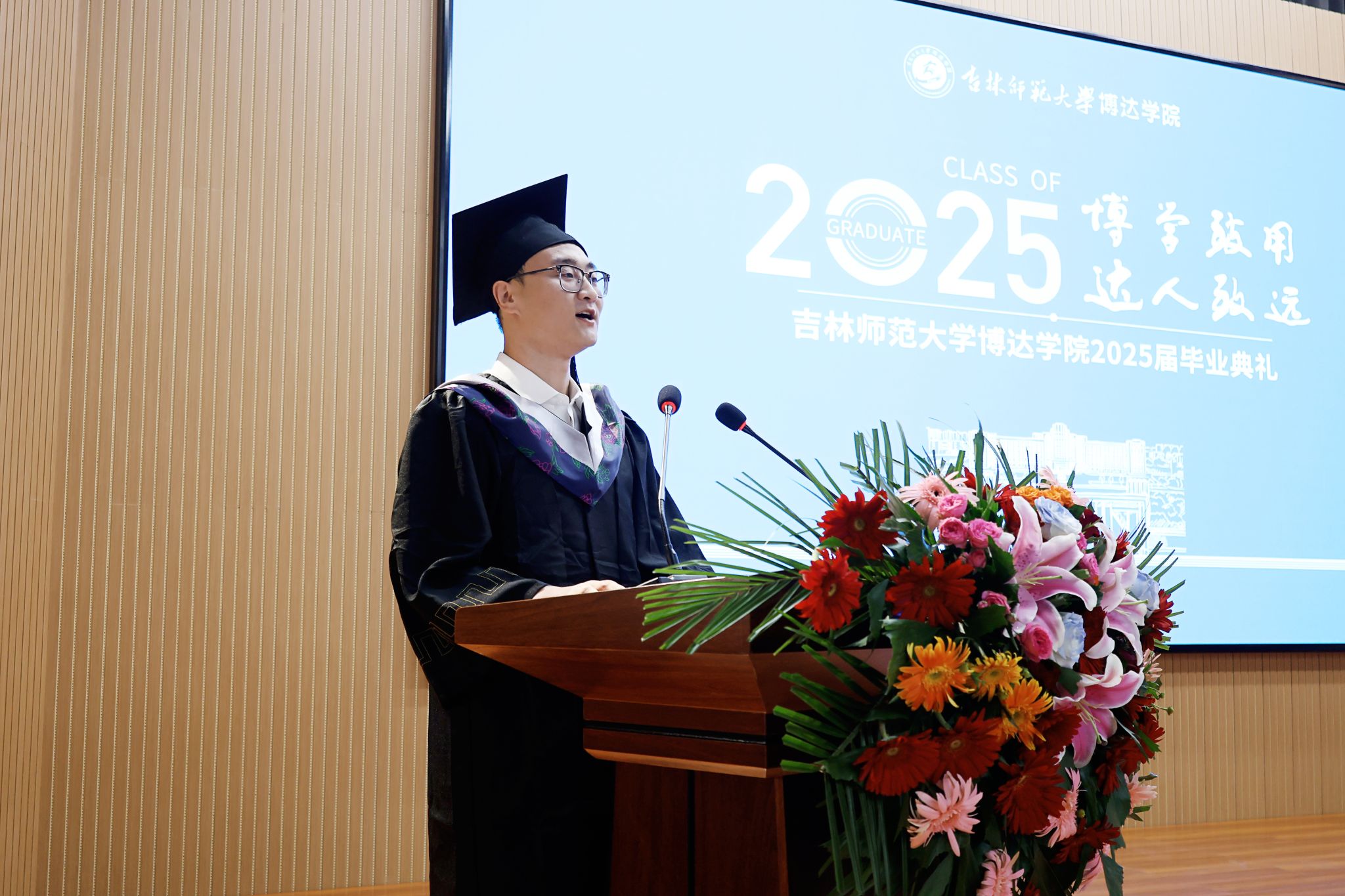 姜凯威同学代表毕业生对母校和老师们表达了由衷地感谢和深深地祝福。