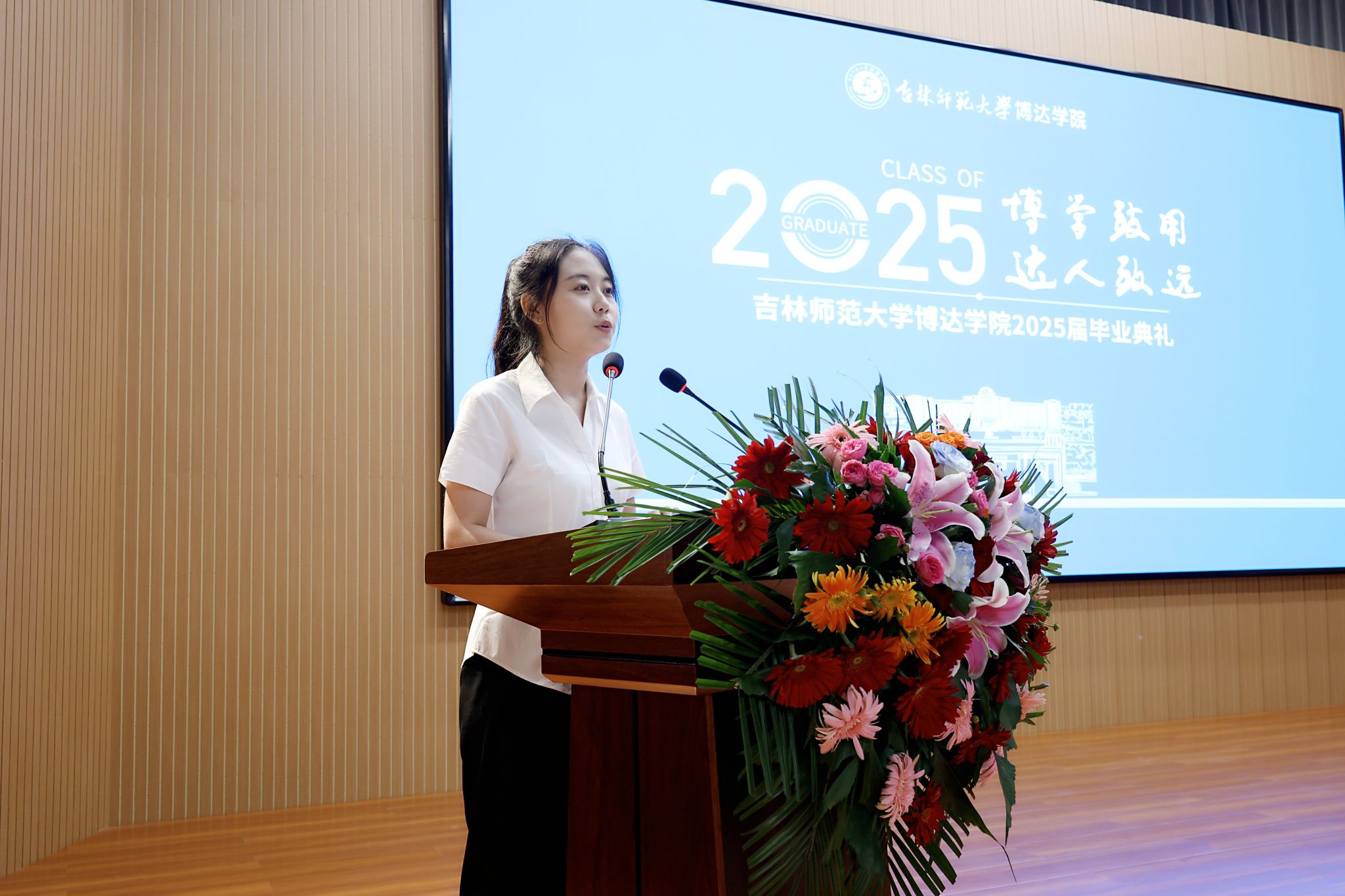 党委副书记李莹宣读2025届毕业生名单、获得学士学位名单、优秀毕业生名单和考取研究生名单。