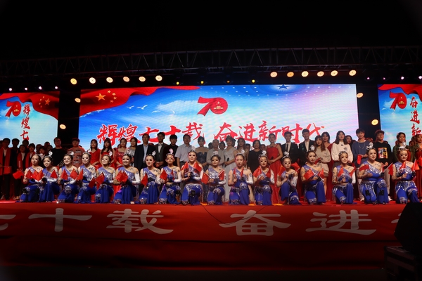 9月27日晚,学校在新校区综合楼门前举办“庆祝中华人民共和国成立70周年文艺汇演暨2019级迎新晚会”,庆祝新中国70周年华诞,表达全校师生爱国之情、报国之志,并欢迎2019级新生入学。学校领导王国军、徐焕文、张伟、李莹出席晚会。全校师生9000余人观看晚会,学校融媒体对晚会进行了同步网络直播。
