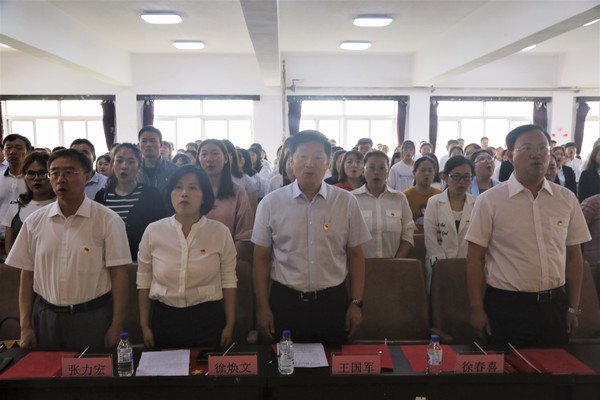党委书记徐焕文代表学校党委向辛勤工作在学校教学、科研、管理、服务岗位上的教职工党员,向励志勤学、勇敢追梦的青年学生党员致以节日的问候和崇高的敬意!并向受表彰的先进集体和个人表示热烈的祝贺!在简要回顾了党的光辉历程,总结了学校近两年来党的建设和各项事业取得的成绩后。她说,学校党委坚持以习近平新时代中国特色社会主义思想为指引,坚持社会主义办学方向,以“四心工程”为抓手,步履坚定、守正出新,成效显著,成果丰硕。她对全体党员提出了三点要求和希望:要坚定理想信念,不断强化使命担当;要加强理论学习,做一名合格共产党员;要脚踏实地努力工作,为博达事业发展贡献力量。她鼓励全体党员要肩负起学校内涵式发展、转设升级的历史责任,全校各级党组织和党员同志要紧密团结在以习近平同志为核心的党中央周围,深入践行党的根本宗旨,坚定忠诚党的教育事业,要牢记使命,在推进立德树人中勇当主力,在全面建设高水平民办大学的新征程中再谱新篇、再立新功!