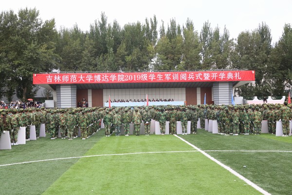 伴随着雄壮激昂的分列式进行曲,由2400多名新生组成的军训受阅方队迈着整齐的步伐,喊着响亮的口号走过主席台接受检阅,充分展现了军训的优秀成果和博达学子昂扬向上的精神风貌。