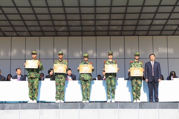 军训评选出来了8支“先进连队”,233名“军训标兵”,59个“内务先进寝室”。副院长张伟向部队赠送锦旗。