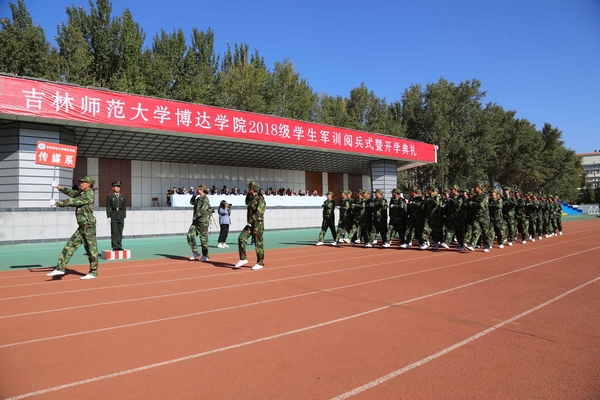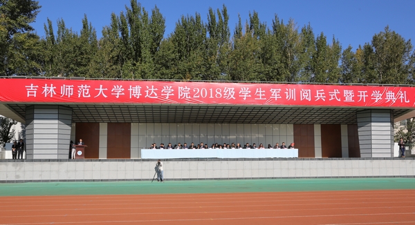 9月27日上午,吉林师范大学博达学院2018年新生军训阅兵式暨开学典礼在体育场举行。王国军、徐焕文、张伟、张力宏、徐春喜等院领导和中国人民解放军某部队领导施冰,各行政单位、教学单位教师及2018级全体新生出席了阅兵式暨开学典礼。副院长张力宏主持开学典礼,副院长徐春喜主持军训阅兵式。