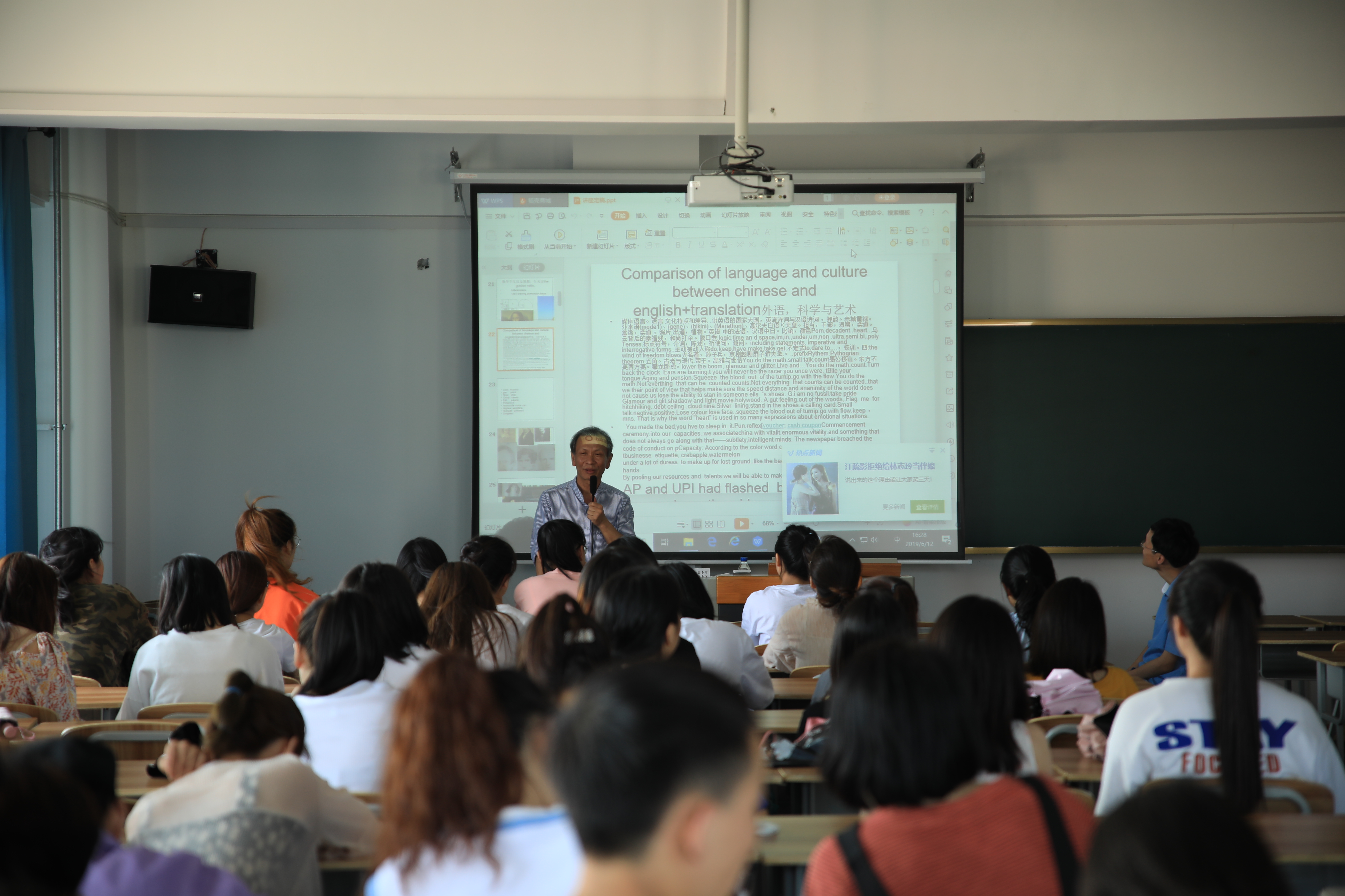 6月12日下午,旅美学者李国亮教授应邀来我校,在综合楼1201教室作“英语:科学与艺术”的专题讲座。我校西语系师生150余人听取了该讲座,讲座由薛洪波处长主持。