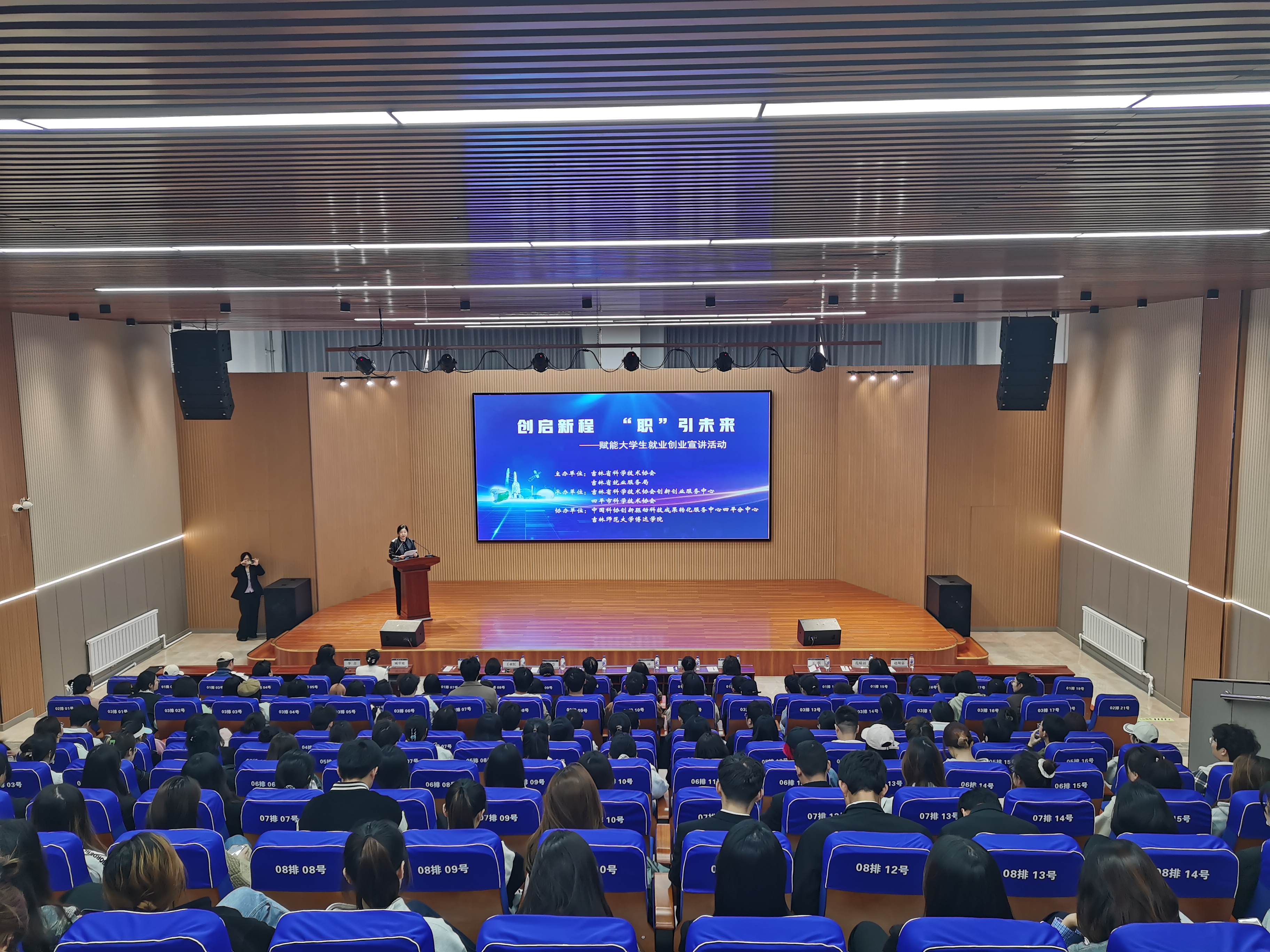 2025年4月23日,由吉林省科学技术协会、吉林省就业服务局联合主办,吉林省科学技术协会创新创业服务中心、四平市科学技术协会承办,中国科协创新驱动科技成果转化服务中心四平分中心、吉林师范大学博达学院协办的“创启新程 ‘职’引未来”——赋能大学生就业创业宣讲活动,在学校体育馆一楼学术报告厅顺利举行。活动聚焦大学生就业政策解读、职业规划指导及创新创业能力提升,吸引了学校各学院198名师生代表参与,现场反响热烈。
