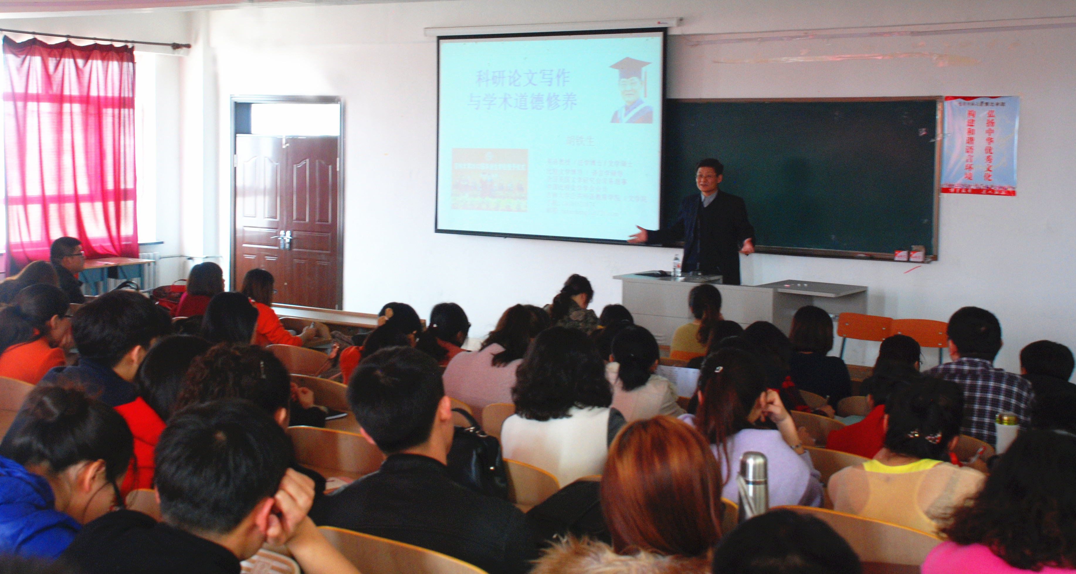3月19日下午13:30,吉林大学文学院博士生导师胡铁生教授在3322教室做题为“科研论文写作与学术道德修养”的讲座,与我院青年教师分享其在科研论文写作方面的一些心得感悟及学术领域的前沿动态。讲座由科研处长侯海荣主持。