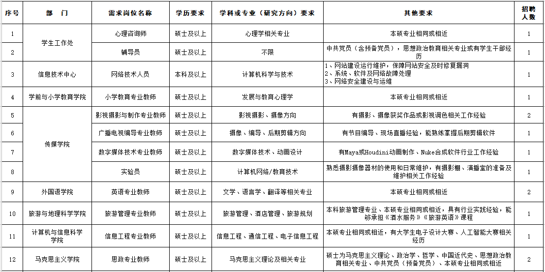 2.学校招聘工作统一由学院人事处负责组织实施,所有招聘信息均会通过我学校官网、官微发布,且不会以任何名义收取费用。对于学校未对外公开发布的招聘信息请求职者注意甄别、核实,勿轻信其他途径的虚假信息而上当受骗。