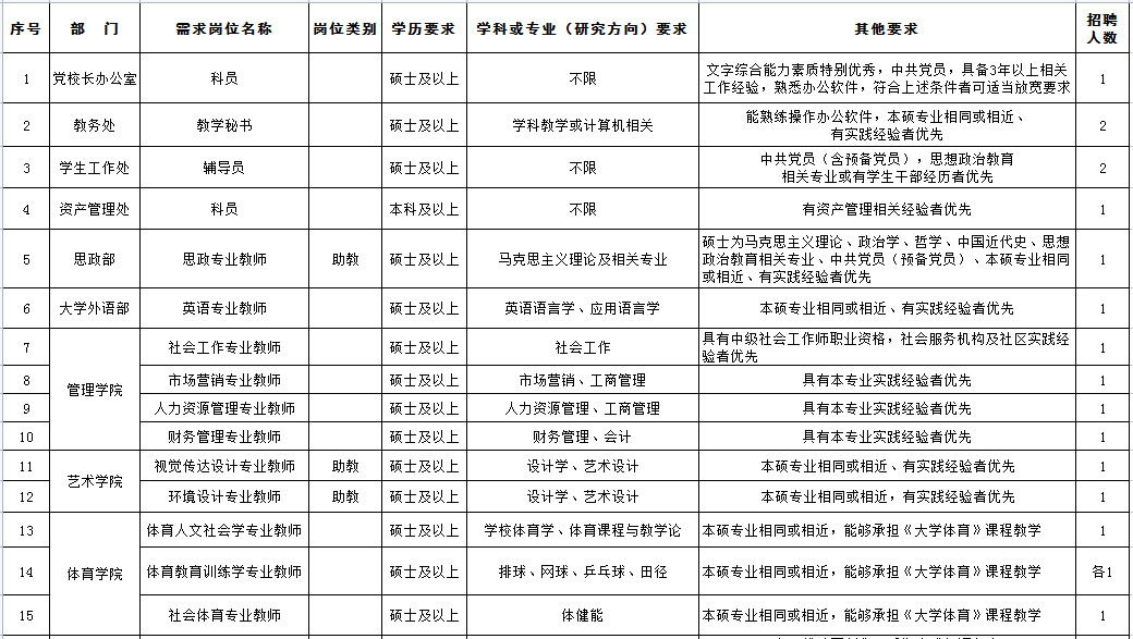 2.学校招聘工作统一由学院人事处负责组织实施,所有招聘信息均会通过我学校官网、官微发布,且不会以任何名义收取费用。对于学校未对外公开发布的招聘信息请求职者注意甄别、核实,勿轻信其他途径的虚假信息而上当受骗。