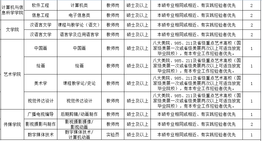 要求各岗位应聘者第一学历须为公办高校全日制本科,且硕士及以上学历,应聘教师岗位要求本硕专业相同或相近;海外学历须持有教育部留学归国服务证明;具有讲师及以上职称优先。