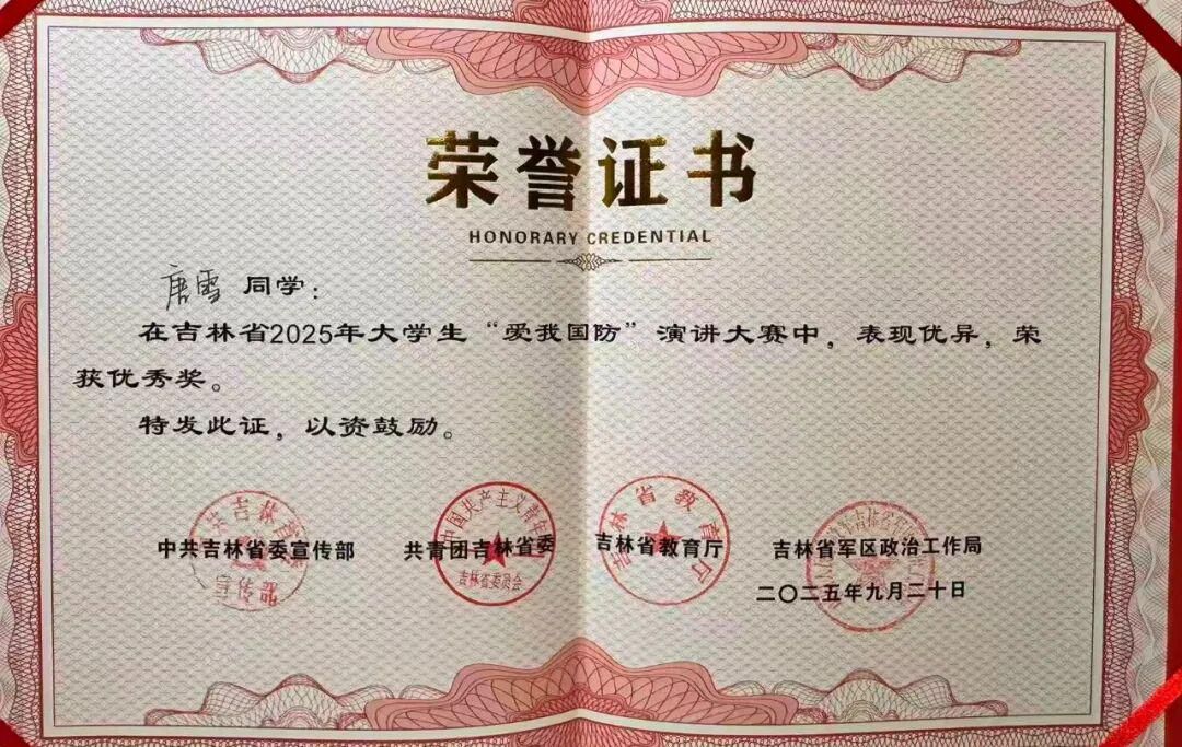 为着力培养担当民族复兴大任的时代新人,引导广大青年学生积极投身国防事业,为祖国贡献青春力量,形成关心国防、热爱国防、建设国防、保卫国防的浓厚氛围,中共吉林省委宣传部、共青团吉林省委、吉林省教育厅、吉林省军区政治工作局拟举办2025年大学生“爱我国防”演讲比赛。我院学子积极踊跃报名参加。
