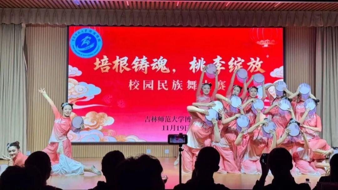 为丰富学生校园文化生活,提升学生艺术修养,营造浓厚的校园文化氛围,2025年11月19日下午18:30,吉林师范大学博达学院“培根铸魂,桃李绽放”校园民族舞大赛在图书馆一楼报告厅隆重举行。教育学院凭借优雅灵动的舞蹈《春嬉》,在比赛中脱颖而出,荣获一等奖。