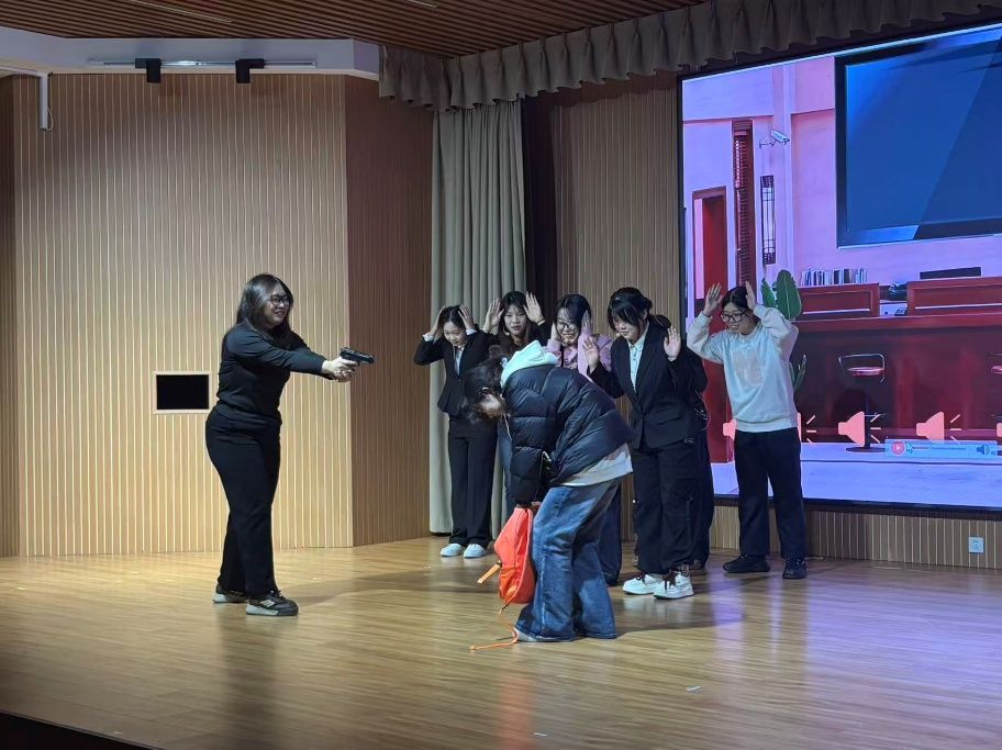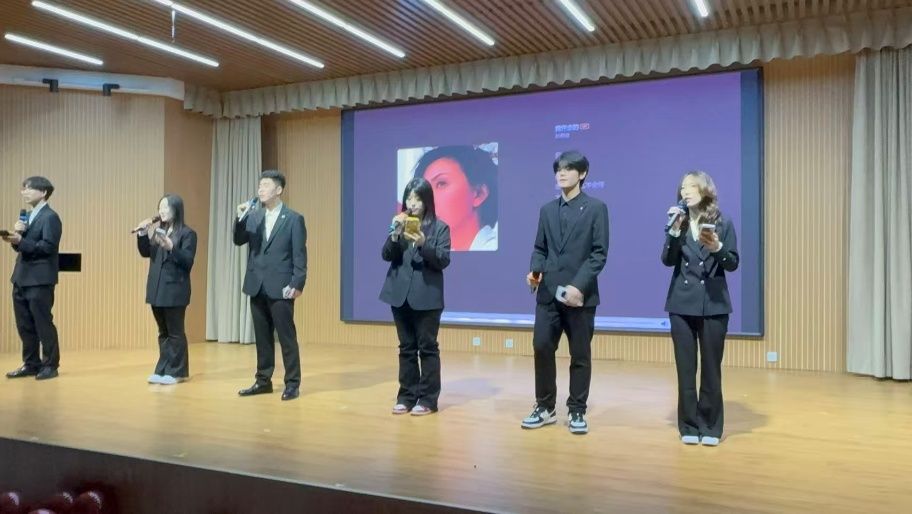 趣味互动环节成为晚会的欢乐支点:听歌识曲中选手们极速抢答,尽显音乐储备;“公鸡下蛋”游戏里,参与者的滑稽跃动让现场笑声不断,师生同窗的距离也在互动中悄然拉近。