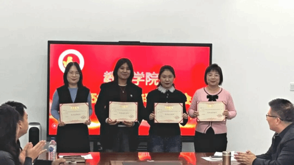随后,会议进入证书颁发环节。在热烈的掌声中,获奖教职工依次上台,分别由学院院长经柏龙教授,副院长王冰副教授,党总支书记汤鹏宇老师,院长助理李楠老师为他们颁发荣誉证书,表彰他们在大学生创新创业指导、学科竞赛指导、课堂教学、科学研究、新闻宣传及学生工作等方面的积极贡献。