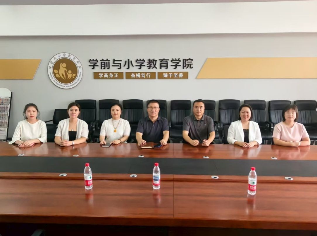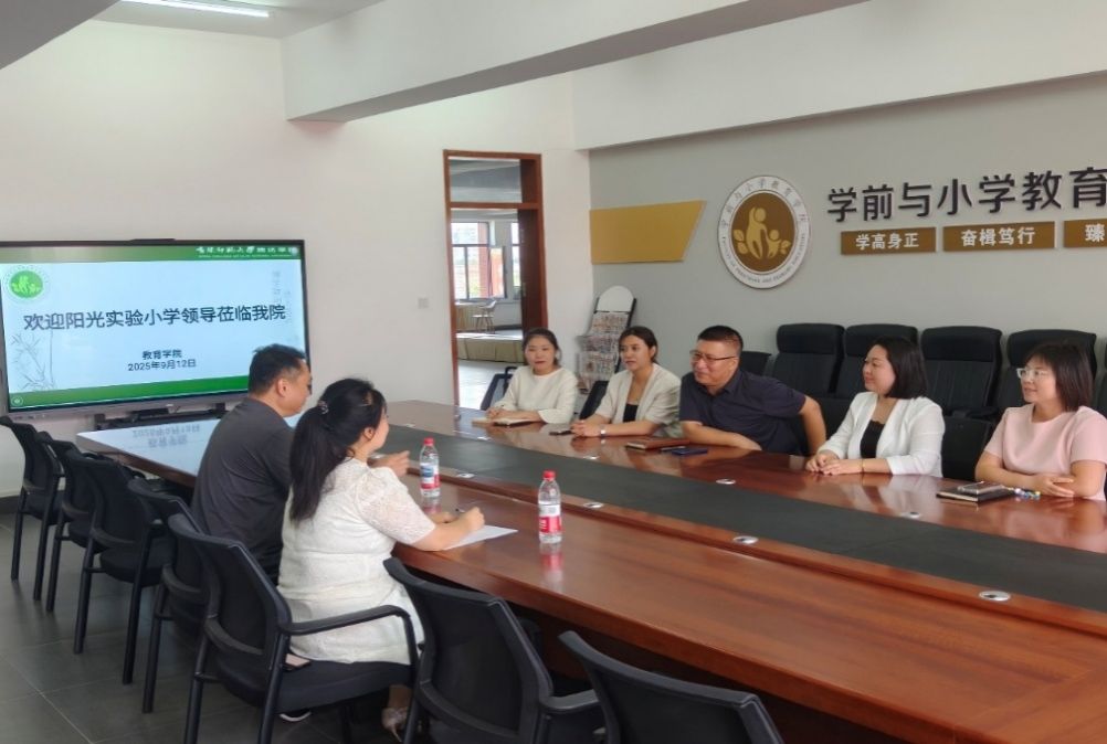 为加强与实习基地小学的深入合作,充分发挥实践基地在应用型人才培养中的重要作用,提升小学教育专业人才培养质量,2025年9月12日10:00阳光实验小学校长赵大威、书记孙立波莅临我院,就合作育人模式方案进行交流。教育学院经柏龙院长、王冰副院长,办公室主任胡静雪老师,小学教育专业负责人陶可新老师以及学院实习负责人李楠老师共同参与本次会议。