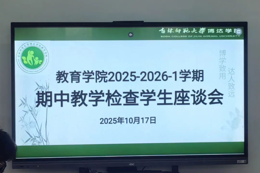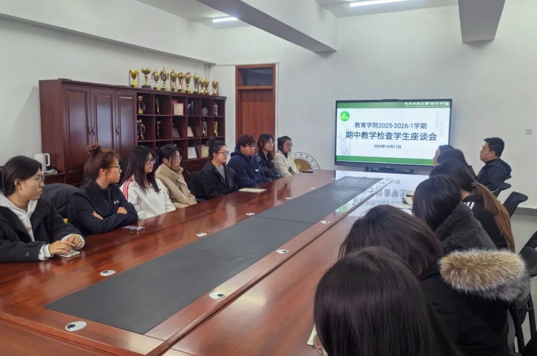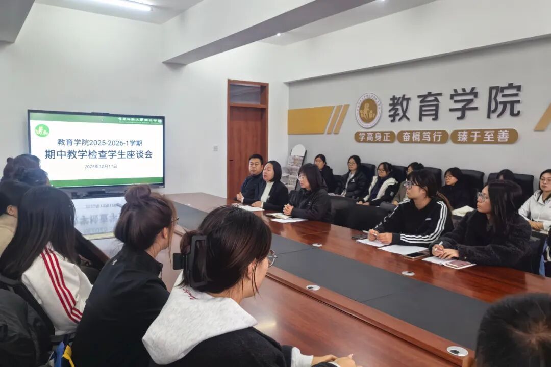 为搭建师生教学反馈的直通桥梁,深入了解学生在校学习与生活情况,教育学院于2025年10月17日13:30在综合楼1309会议室召开2025-2026-1学期期中教学检查学生座谈会。教育学院全体行政教师及各专业、各年级、各班学生代表参加座谈会,会议由王冰副院长主持。