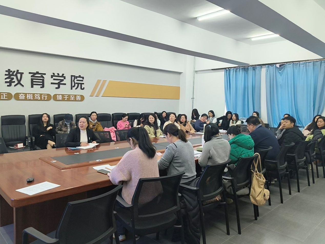 教育学院于2025年11月26日15∶30在综合楼1309会议室召开了以“面向幼儿:学前教育专业舞蹈课程的‘教、编、演 ’一体化教学能力提升”为主题的教研活动。本次教研活动由马兰老师主讲,学院全体专职教师共同参与,副院长王冰副教授主持。