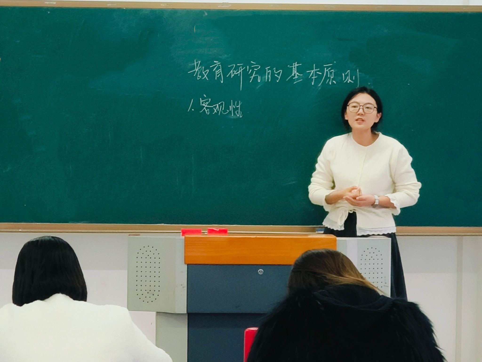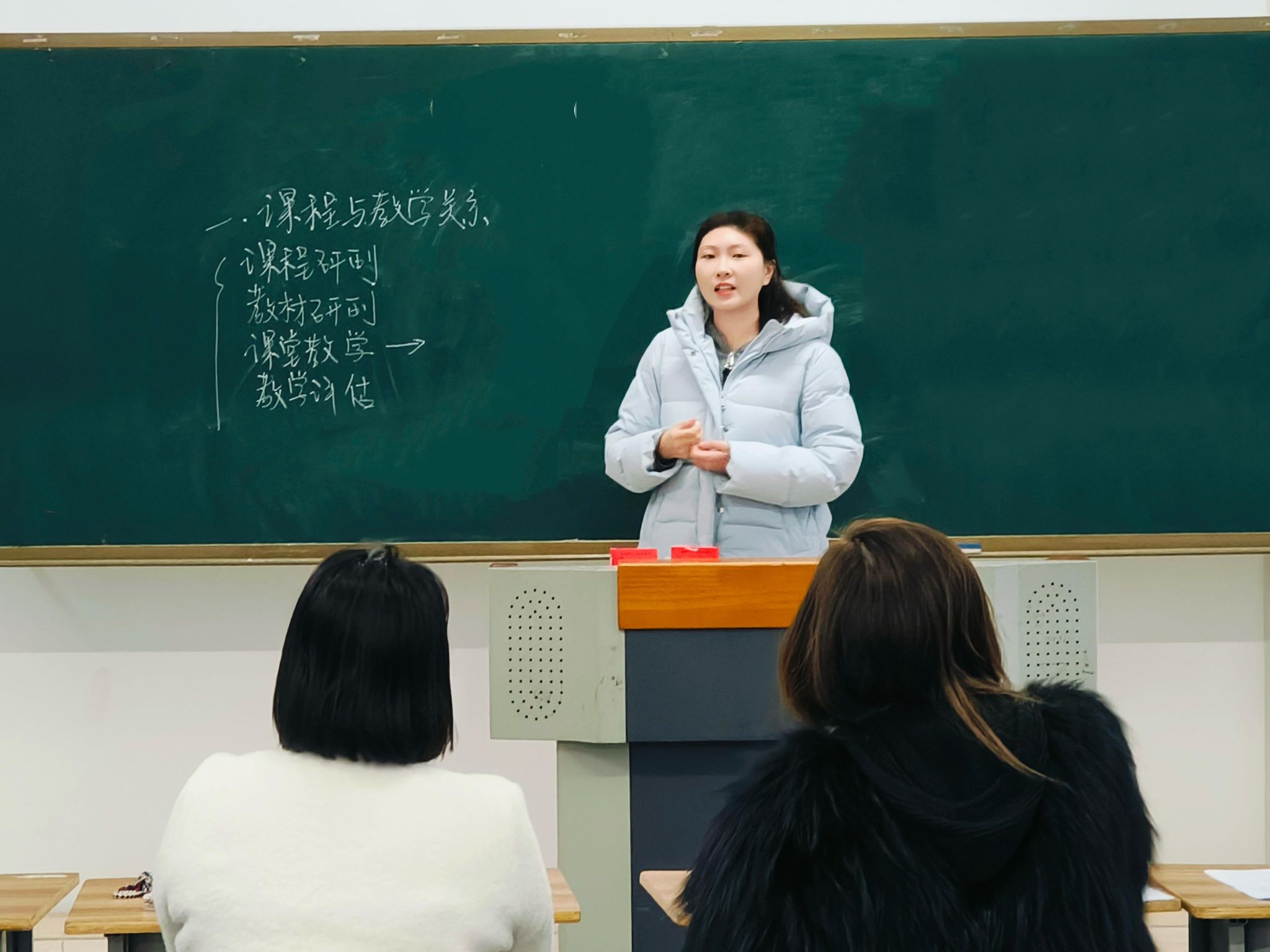 为严把课堂教学质量关,提升新授课教师教学能力,夯实教学基本功,确保新学期课程教学工作高质量推进,教育学院于2025年12月12日15:05在综合楼1315教室精心组织开展新授课教师试讲打磨活动,为教师专业成长赋能,筑牢教学质量根基。本次活动由教育学院副院长王冰副教授,教育学教研室葛玉曼主任以及心理学教研室韩笑主任共同担任评委。