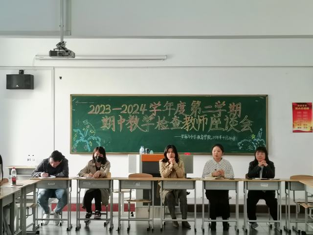 为解决学院在教育教学中存在的实际问题,进一步提高教师教学质量,2024年4月24日15:00,学前与小学教育学院在综合楼1302教室召开2023-2024学年第二学年度期中教学检查教师座谈会。出席本次会议的有学前与小学教育学院院长赵晓光教授,教务处教务科科长邵艳茹老师,教学办公室主任胡静雪老师,小学教育专业负责人陶可新老师以及学前与小学教育学院全体专职教师教师。