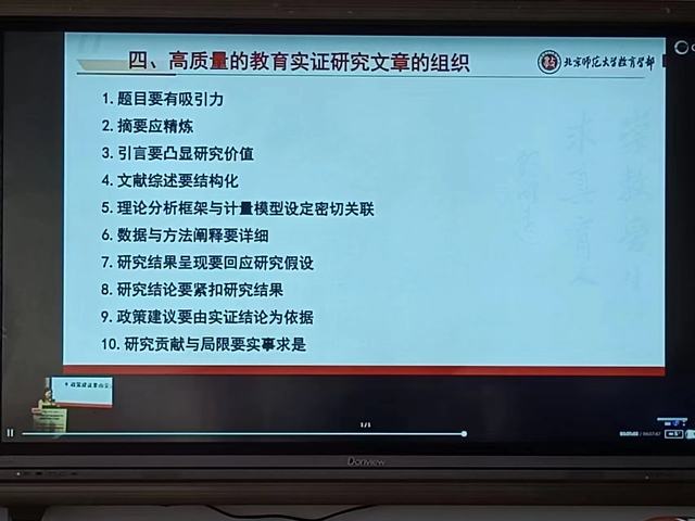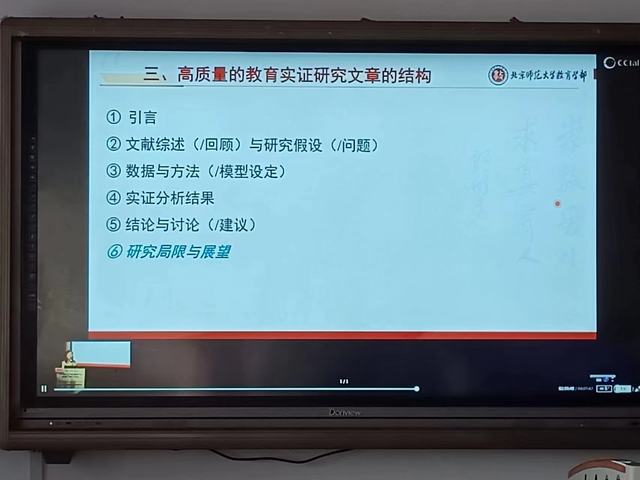 会议伊始,胡咏梅教授通过统计图的形式清晰明了的表示了我国高质量教育科学研究的趋势。随后,胡咏梅教授利用大量文献为教师们介绍了高质量的教育实证研究文章的特点,让教师们对其有更深刻的理解。最后,胡咏梅教授又通过对文章引言、实证、结果等方面的分析,提升了教师们对于教育研究文章结构的分析能力。