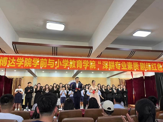 2023年6月14日15:30,吉林师范大学博达学院学前与小学教育学院在北校区二教六报举行“深耕专业素质,剧绎红色经典”专业技能汇报展演。本次活动由吉林师范大学博达学院李莹副书记、学前与小学教育学院党委副书记兼学工办主任汤鹏宇老师、办公室主任胡静雪老师、学前与小学教育学院全体专职教师和辅导员老师等学院领导老师代表及各班学生代表一同观看。