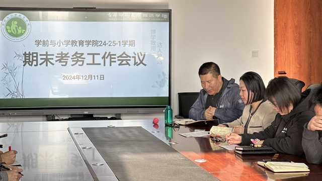 为确保期末考试和英语四六级考试的顺利进行,学生工作及就业指导进行深入讨论。学前与小学教育学院于2024年12月11日在综合楼1309教研室举办了期末考务工作会议。本次会议由经柏龙院长主持,学前与小学教育学院全体教职工出席。