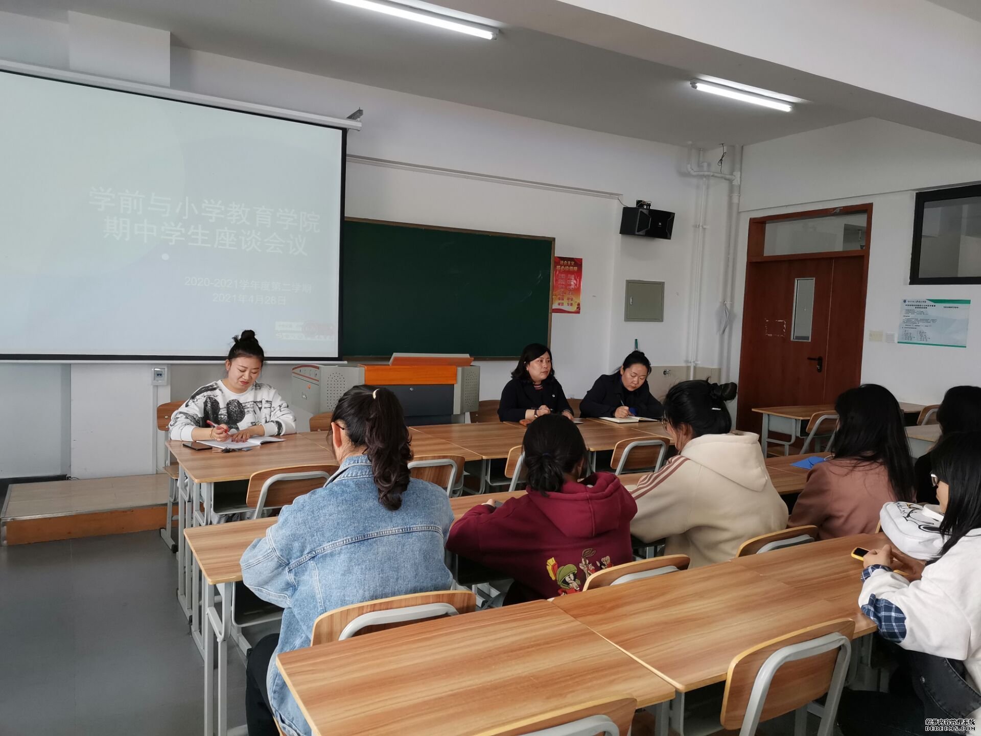 学前与小学教育学院于2021年4月28日13:30在综合楼1301举行2020-2021-2学期期中教学检查座谈会。出席本次会议的人员有学前与小学教育学院办公室人员及各班代表。