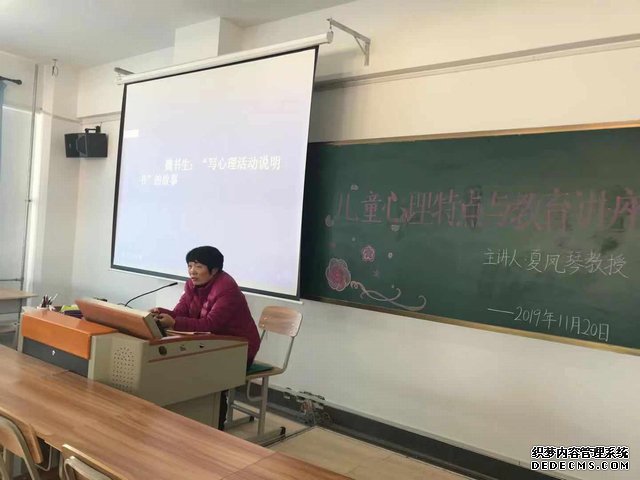 首先,夏凤琴老师进行自我介绍:夏凤琴老师作为吉林师范大学教育科学院教授,硕士生导师,在“人文教育与科学教育融合的教师教育体系研究”中多次获得国家级奖项,现任学前与小学教育学院特聘教授。其次,夏凤琴教授对本次会议内容作出详细的阐述,主要分为三部分:第一部分为儿童的心理特点;第二部分为根据儿童心理特点实施素质教育;第三部分为根据学生特点,指导学生学会学习。最后,夏老师理论联系实际,深入浅出,采用生动有趣的事例让全体在场教师受益匪浅,加强了专职教师的理论知识,对课堂教学有着重要的指导意义,从了解儿童的身心发展规律方面,既符合心理学规律,也符合了教育学规律。