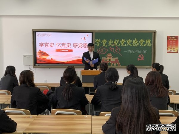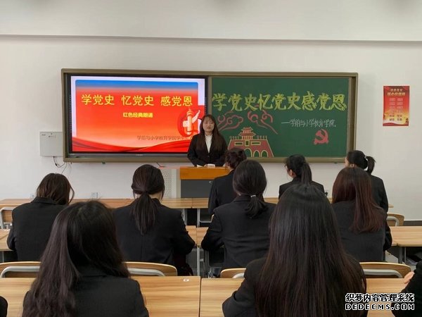 为深入推进党史学习教育活动,传承红色基因,深情回顾党的奋斗历史,学前与小学教育学院于2021年4月9日在综合楼1320教室开展“学党史 忆党史 感党恩”红色经典朗诵活动,全体学生党员参加。