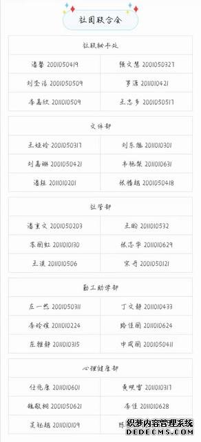 经过两天的选拔,团学联纳新名单已经出炉。让我们一起来看看是哪些同学通过竞选,成功加入团学联这个大家庭吧!