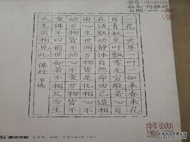 在目前疫情严重的情况下,我院选择延期开学以确保同学们的身体健康和生命安全,而同学们也并没有选择懒散度日,依旧做到了“停课不停学,在家自主学习”,同学们选择每天练习钢笔字来不断丰富自己,陶冶情操。