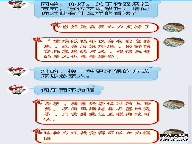 首先,学院结合疫情特点,制定了清明节活动开展方案,通过微信群、QQ群向全院师生发出清明节文明祭祀倡议书,倡导全校学生做到文明祭祀、绿色祭祀、节俭祭祀、安全祭祀、错峰祭祀。其次,今年是中华人民抗日战争暨世界反法西斯战争胜利75周年,是全国人民上下众志成城防控新冠肺炎疫情的关键时期。为了深入开展革命传统教育和爱国主义教育,哀悼为抗击疫情斗争牺牲的烈士和逝世同胞。学前与小学教育学院向全校学生发起“致敬·2020清明祭英烈”活动。通过默哀悼念、主题书法展、自主观看红色电影等方式来了解英雄事迹,表达哀思与敬意,缅怀先辈。最后,学前与小学教育学院新闻部对同学们进行线上采访,询问关于倡导绿色清明祭祀方式的观点。结果显示,同学们更偏向以鲜花祭祀、植树祭祀、网上祭祀等方式取代传统的上坟烧纸祭祀方式,表示会以实际行动支持文明祭祀。
