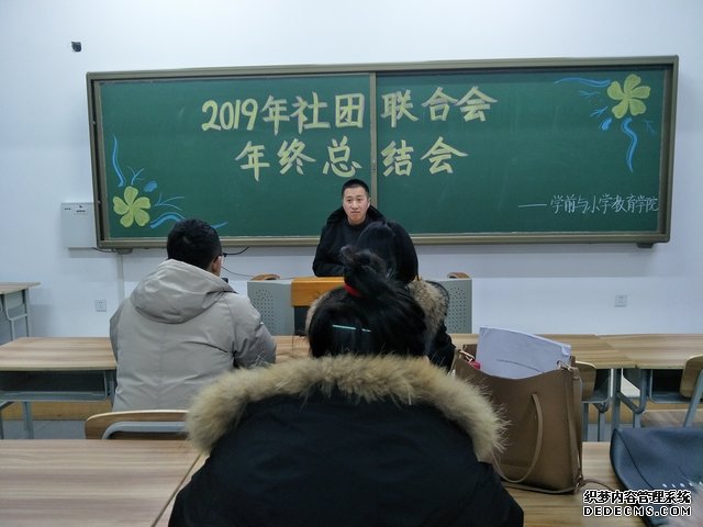 2019年12月11日,学前与小学教育学院社团联合会在综合楼1314教室召开社团联合会年终总结大会,出席本次大会的人员有分团委书记柳志明,社团联合会主席团及各部门部长。