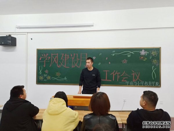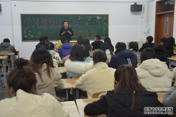 学风是学校风貌的重要体现,而校园环境又是学风建设的重要组成部分,尤其是宿舍文明。本次会议主要从相关班委工作对接方面展开,希望班级干部能够充分发挥其作用,敢作敢为有担当,建设优良学风,带领班级团体不断向前。宿舍管理加强对学风建设的形成和校园安全工作的开展起到十分重要的作用。主要强调禁止在宿舍养宠物,防止病毒感染和学生在校期间无特殊情况不得肆意外出、晚归不归,应严格遵守学前与小学教育学院晚上十点归寝,以便同学们在23:00准时就寝。并任何情况都严禁使用违章电器的宿舍管理制度。良好的宿舍氛围有利于优良学风的形成,宿舍管理的强化也会减少不必要的安全问题发生,减少安全隐患。生活班长和寝室长要起到带头作用,同时舍务部和舍务治保部要严格要求,加强督促。