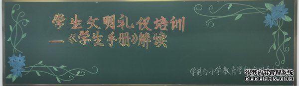 为了进一步提高我院学生干部的综合素质,树立远大的理想,增强自我教育、自我管理、自我服务的意识,学前与小学教育学院分团委纪检部于2019年11月20日下午3点30分在1322教室举行学生干部礼仪培训——《学生手册》解读活动,出席人员有学前与小学教育学院纪检部部员以及学前与小学教育学院19级学委。