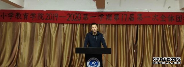 2019年10月15日17:45,学前与小学教育学院在二教六楼报告厅召开2019-2020第一学期第17届第一次全体团学联干部大会,本次大会出席人员有分团委书记柳志明和全体团学联干部。
