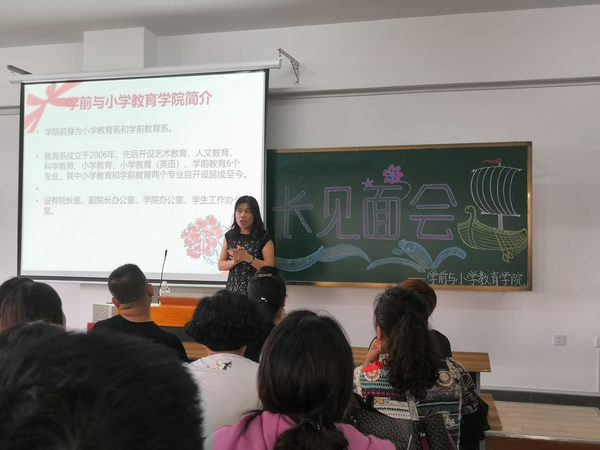 2019年8月25日14:00,吉林师范大学博达学院学前与小学教育学院在综合楼1301教室拉开了新生家长见面会的帷幕。本次活动到场的嘉宾有学前与小学教育学院院长赵晓光;副院长王冰、徐彩霞;高等研究所所长王秋芳;学前与小学教育学院学工办主任柳志明;学前与小学教育学院专职教师王涛。由赵晓光院长担任此次会议的主讲人。
