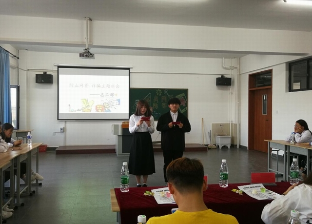2019年5月28日,教育系志工部在1302教室举办了以“远离校园网贷,谨防诈骗”为主题的班会活动。2018级一二班全体同学参加了此次班会。