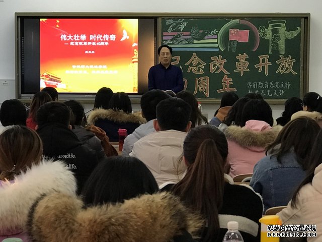 吉林师范大学博达学院学前教育系于2018年11月21日15时在综合楼1313教室召开关于改革开放40周年讲座,主讲人为吉林师范大学马克思主义学院周亚东教授。出席本次讲座的老师有刘庆斌老师、李东婕老师、范美荣老师等人,数学系常秀云老师、郭丽莉老师、郑鑫老师等人。