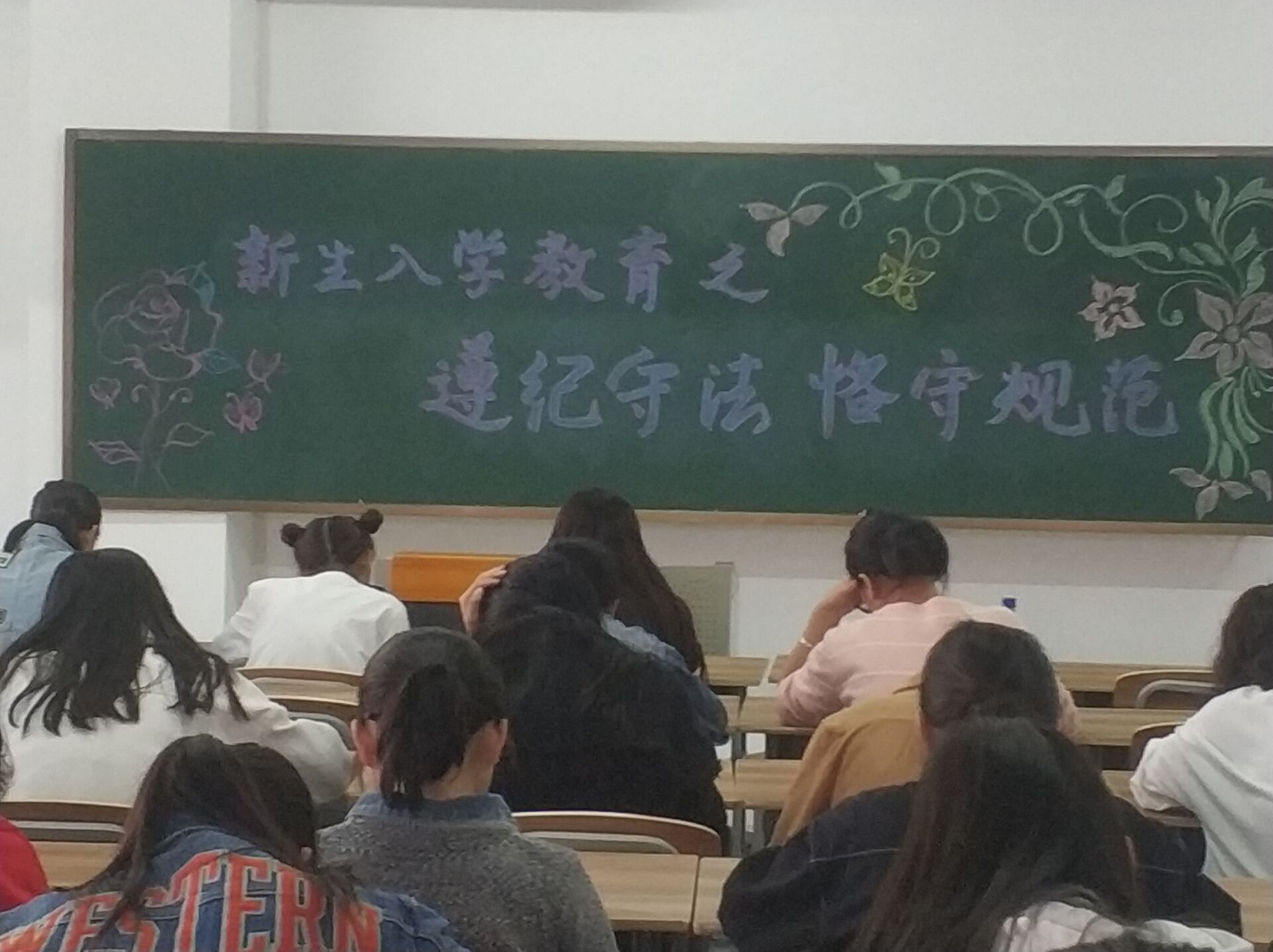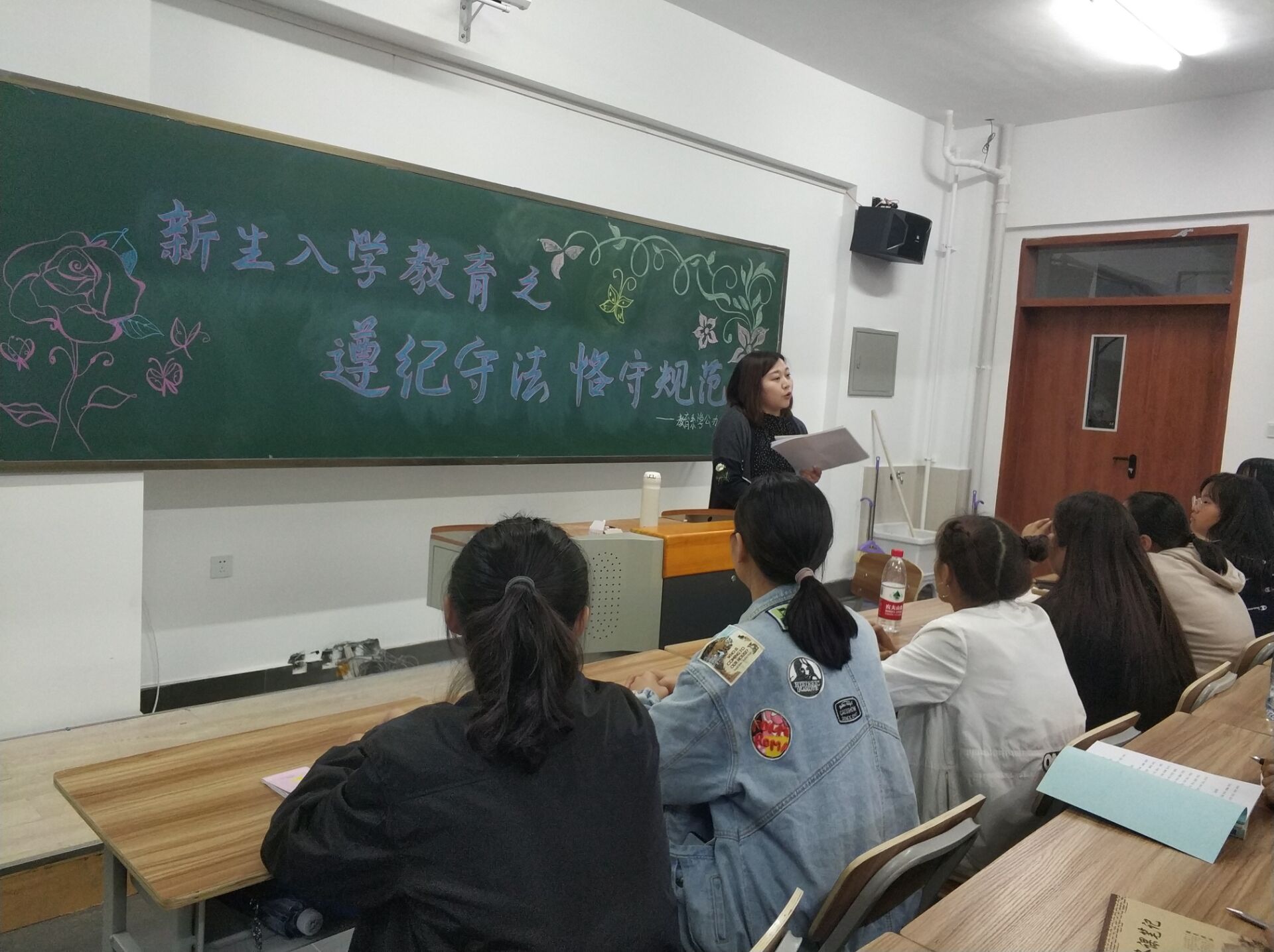 2018年9月9日18点三十分,我系在1301举办了新生教育之遵纪守法 恪守规范大会。参与此次大会的有辅导员李杨老师及2018级全体学生。