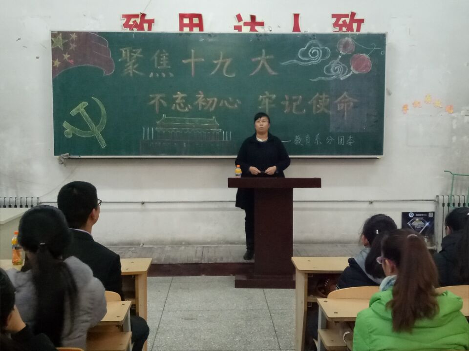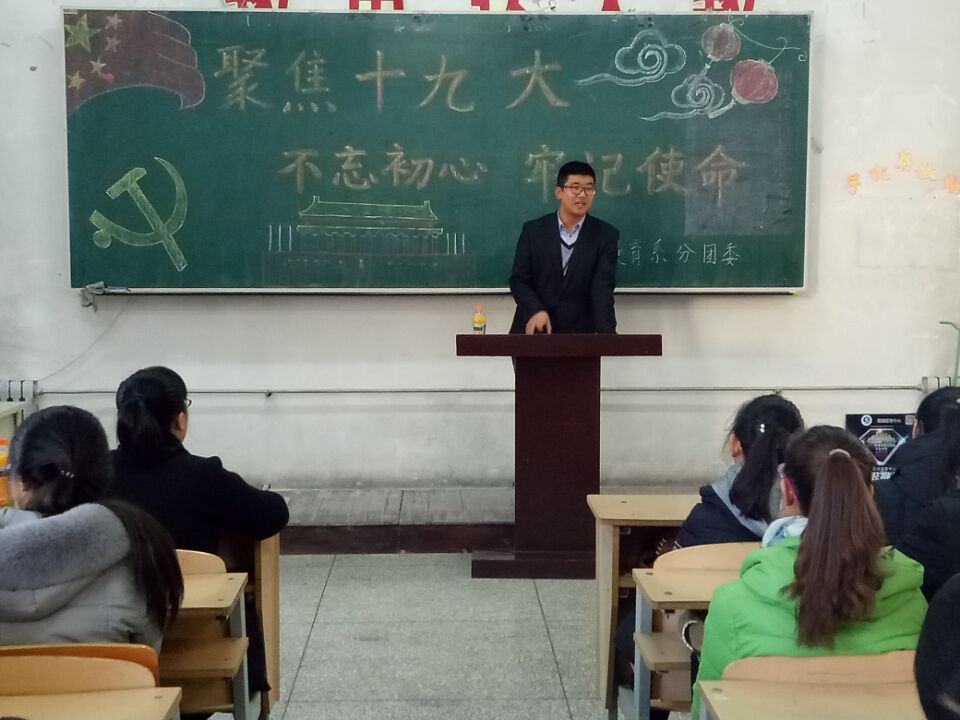 2017年11月22日14时,教育系在2321教室召开了由我院思政部副主任生忠军老师主讲的聚焦十九大 ——“ 不忘初心,牢记使命”的主题讲座。莅临本次讲座的有:教育系学工办主任侯雨忻老师、学生党员、入党积极分子,及部分学生干部。