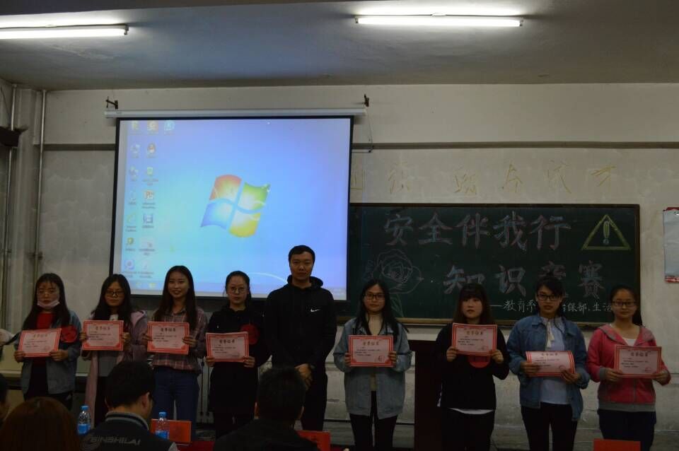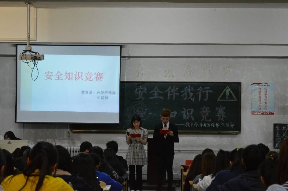 2017年4月25日晚上6点,教育系生活部联合舍务治保部举办了“安全伴我行知识竞赛”活动。莅临本次比赛嘉宾有辅导员李重言老师和社联副主席王俊飞。