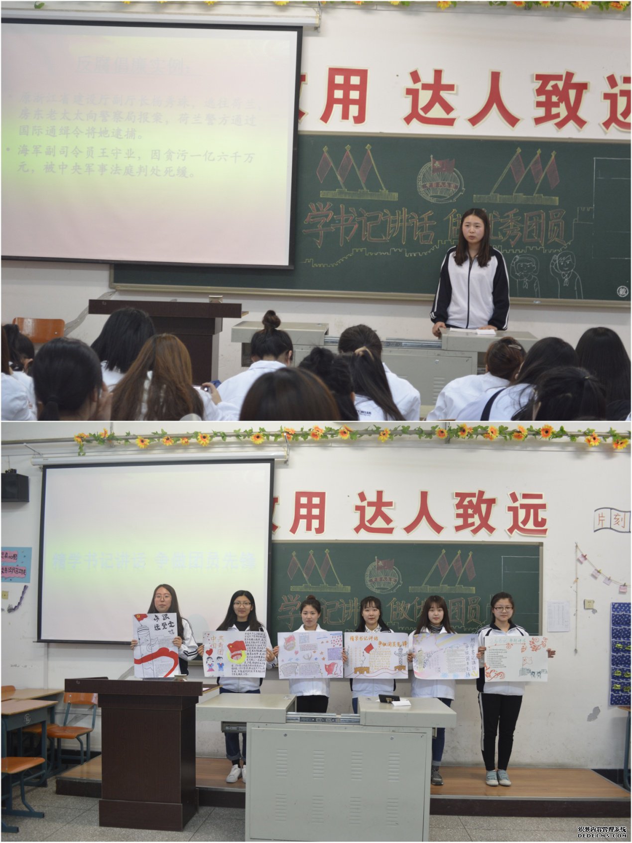 本次活动以“理论联系实际”为主,由院系副书记们进行活动会议。在会议过程中首先是副书记们对本次会议的主要精神进行了较为详细的阐述,为同学们介绍了“青年马克思主义者培养工程,做合格的共青团员,贯彻党的教育方针”的内涵及意义。在团支书的积极带动下各位同学踊跃发言,积极发表自己的看法大家互相讨论,各抒己见,并且借助唱歌、小品等互动的小节目鼓励大家发言,其间同学们热情呼应,反响较好。通过本次活动的开展,达到了传递积极影响的目的。活动结束后,我院于5月2日在一教宣传栏处进行活动板报展览,板报内容以活动照片、文字、图画为主,使同学们更加清楚的了解了党的历史,了解到了马克思主义的先进性和革命性,同学们在思想上进一步坚定了跟党走社会主义道路的信念。