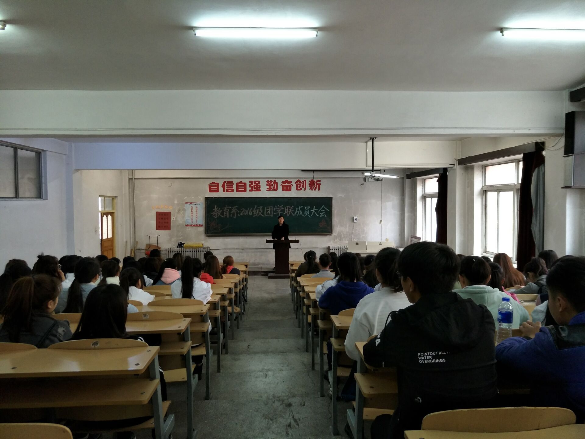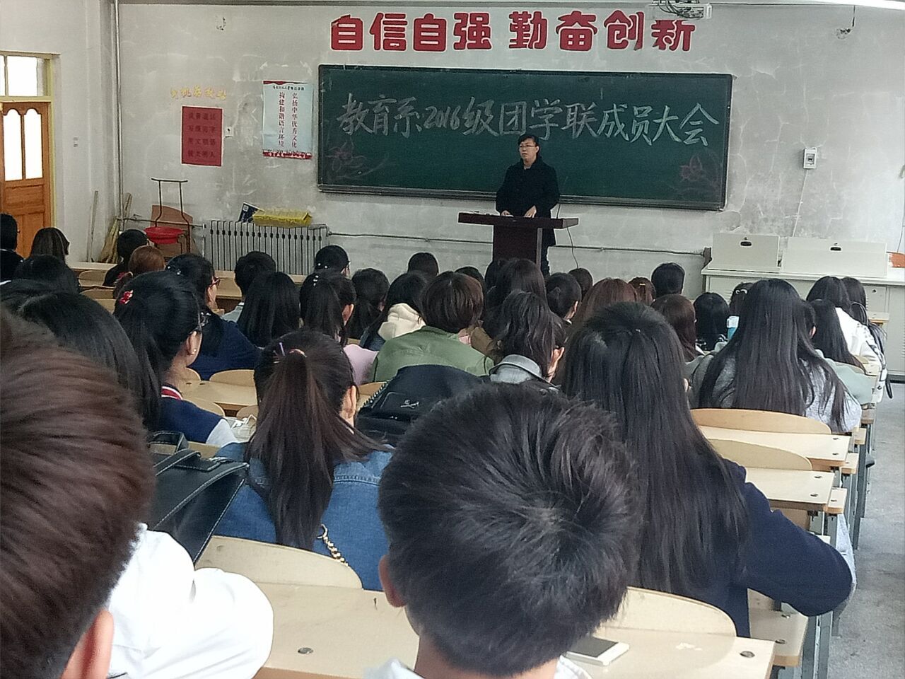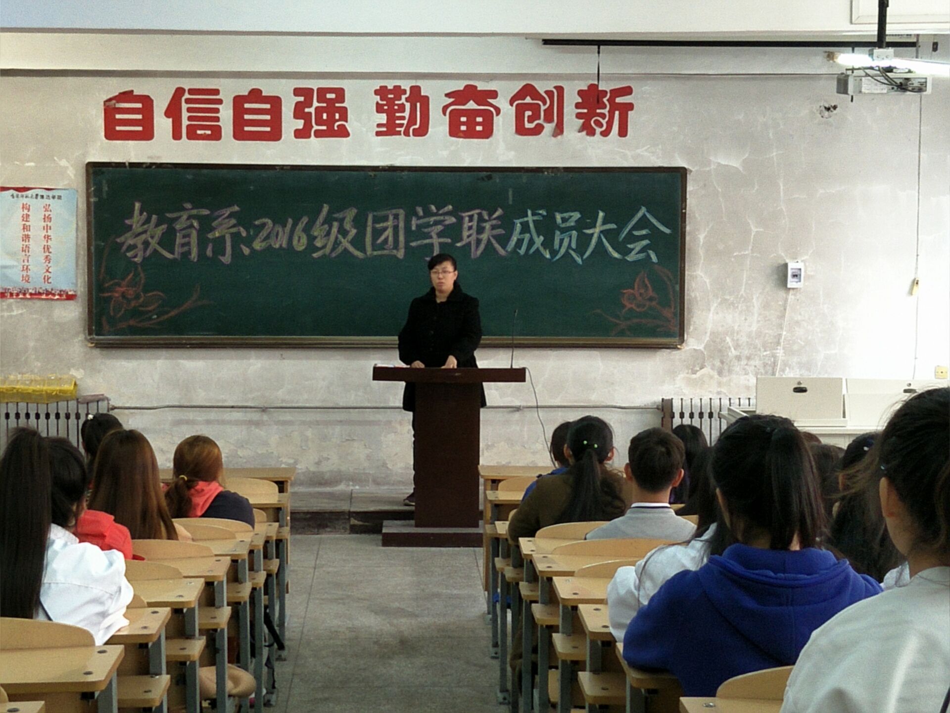 2017年3月22日中午 12点20分,教育系在2102教室召开了2016级团学联成员大会,大会由学工办主任侯雨忻老师主持,2016级全体学生干部参加此次大会。