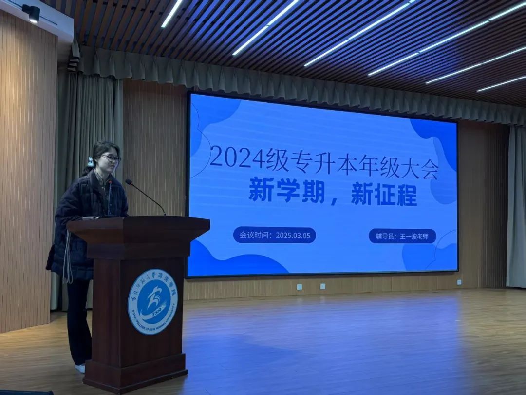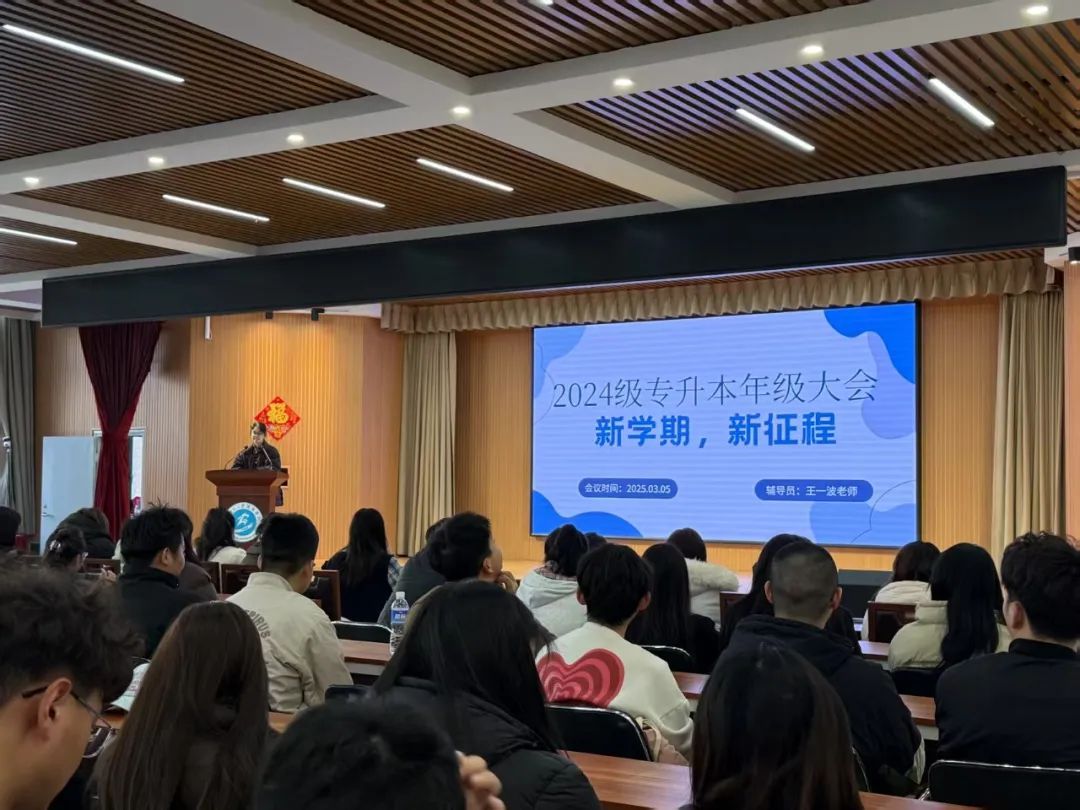 为帮助大家更好地适应大学生活,明确学习与生活的各项要求,学前与小学教育学院24级专升本年级大会于2025年3月5日下午四点在图书馆一楼报告厅顺利召开。本次大会由24级专升本辅导员王一波老师主持,24级专升本全体学生参加。