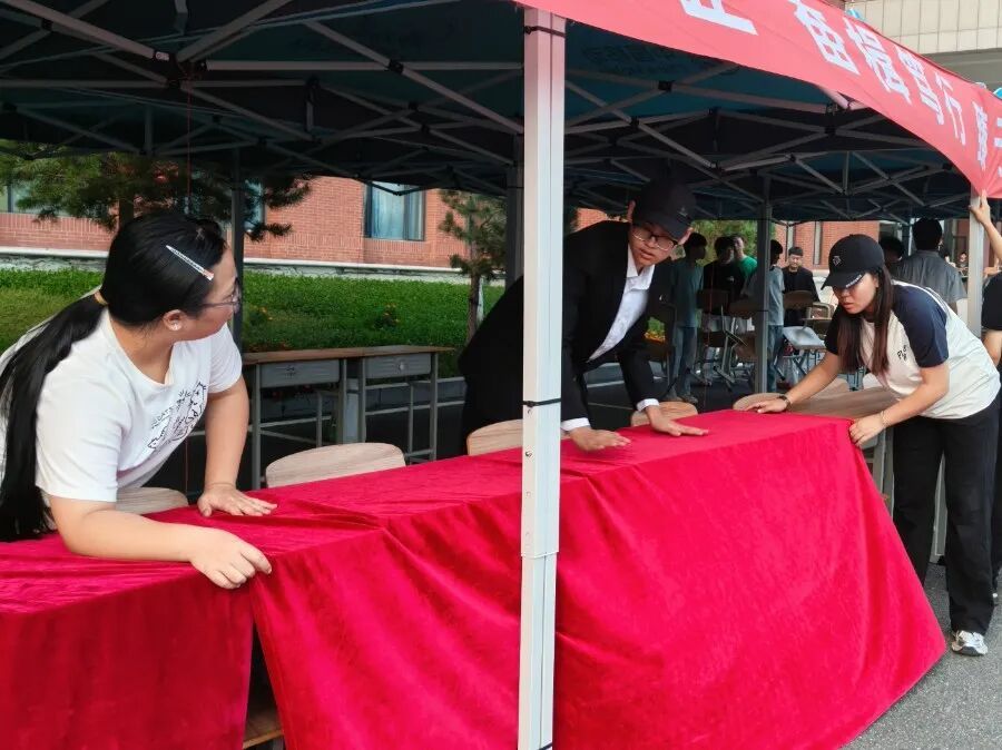 八月二十九日,从夕阳渐沉到星光点点,教育学院的老师和学长学姐们依然在热情满满地布置迎新现场。“志愿天团”全面出击,贴心buff直接拉满!大家分工明确,又默契十足:横幅挂得平直稳固,桌椅摆得整齐划一~每一个细节都反复调整,只为让你们踏进校园的第一刻,就感受到扑面而来的温暖与有序!