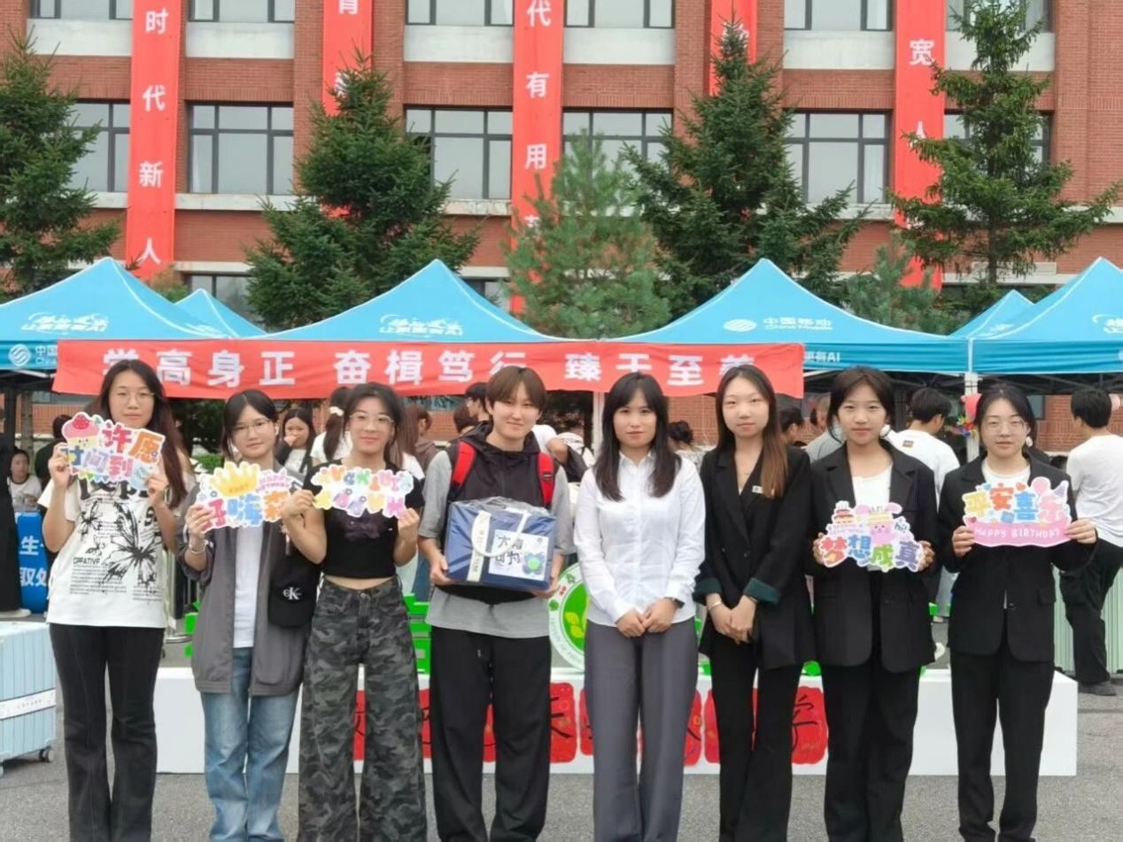 寿星刚刚办理完入学手续,学长学姐们便立刻聚拢过来,齐声唱起了生日赞歌:“今天你生日,送上我祝福……”现场有精心准备的礼物和周围洋溢的灿烂笑脸,老师也为寿星送上了诚挚的祝福,温馨氛围满溢涌动。