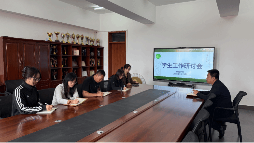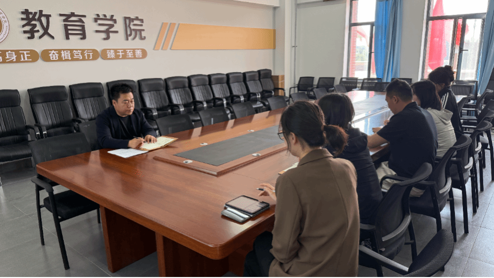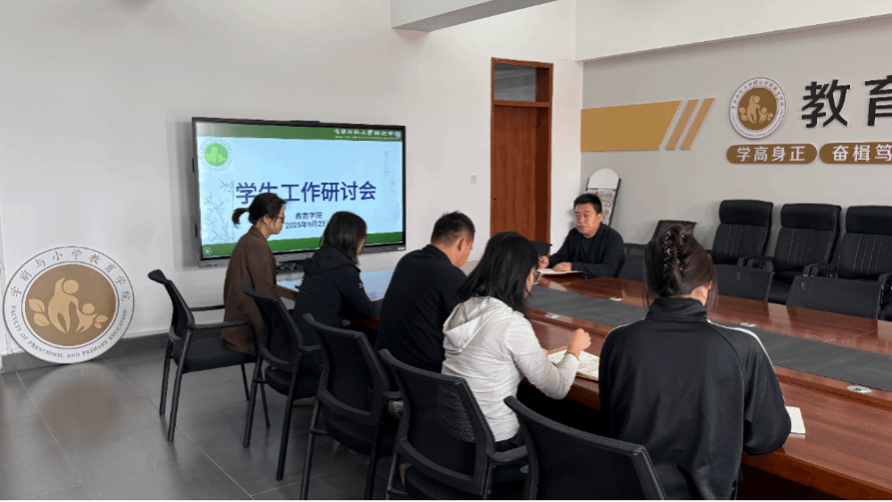 为扎实推进新学期学生工作,确保各项任务有序开展,教育学院于2025年9月23日上午10:35在综合楼1309会议室顺利召开学生工作研讨会,会议围绕近期几项核心学生工作进行深入研讨和周密部署,学工办主任汤鹏宇老师与各年级辅导员共同参与本次会议。