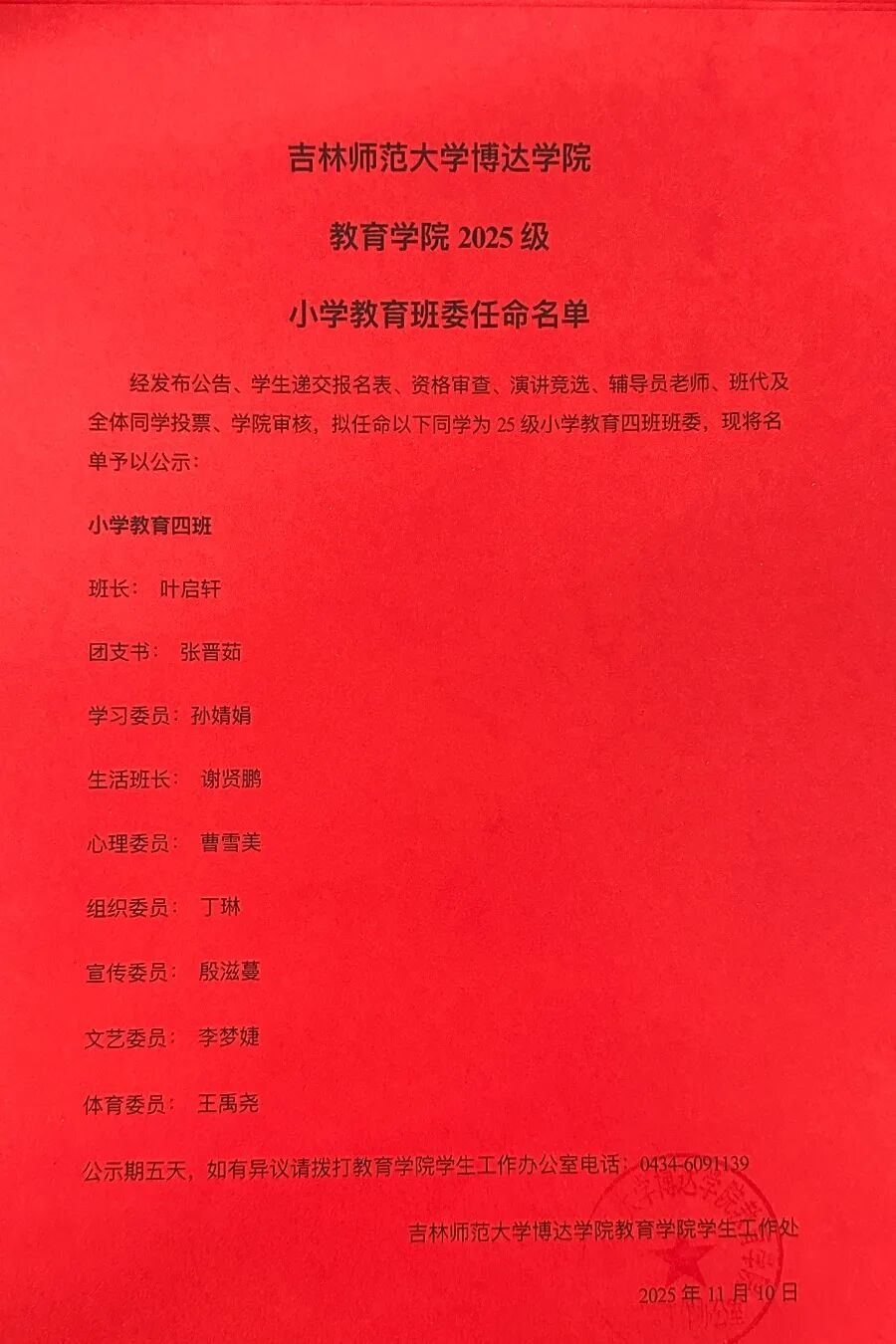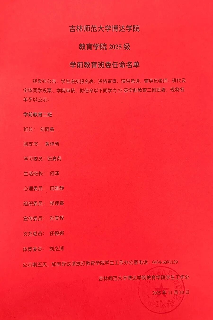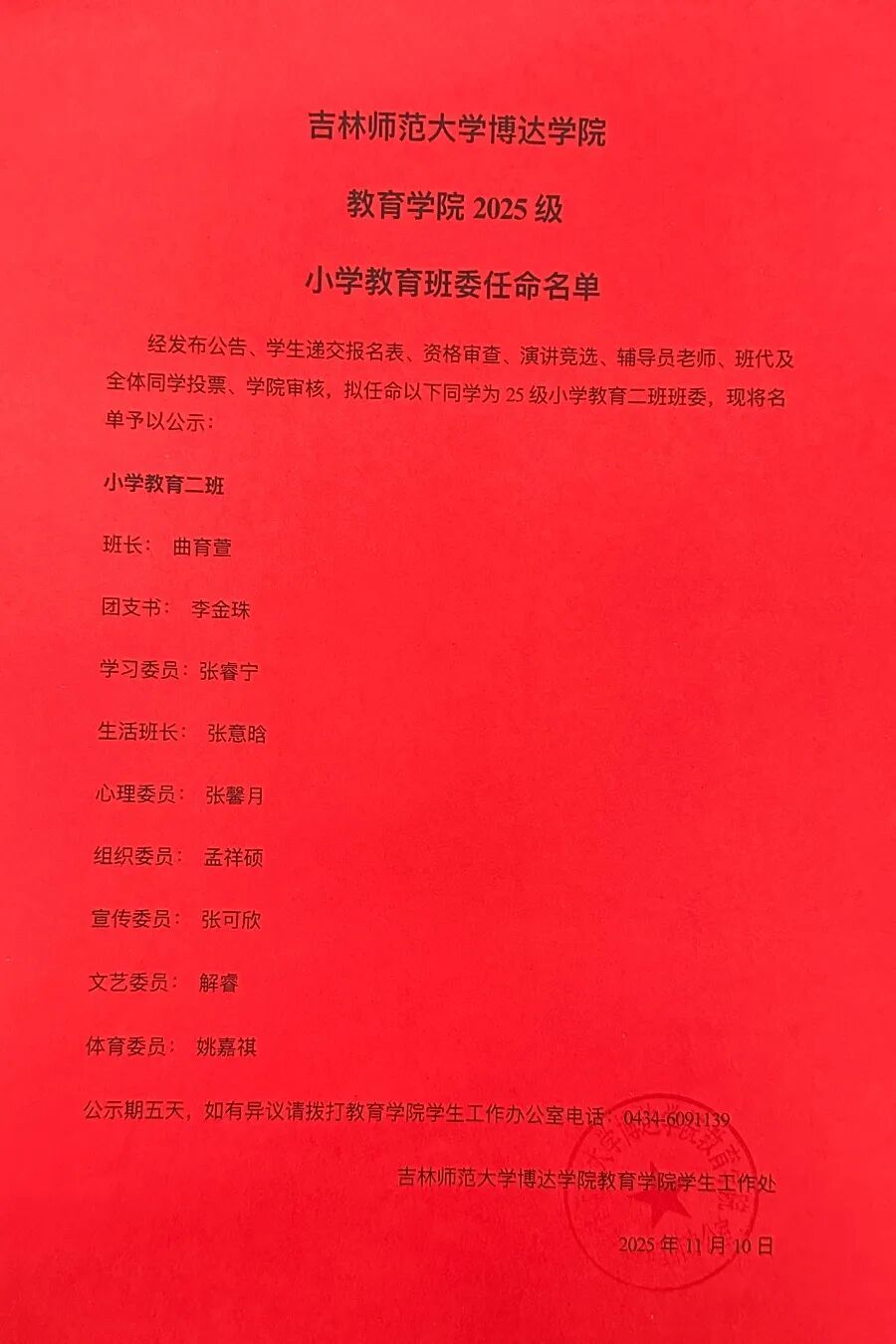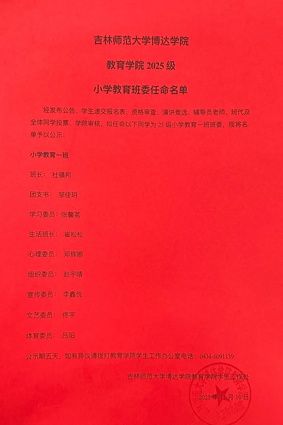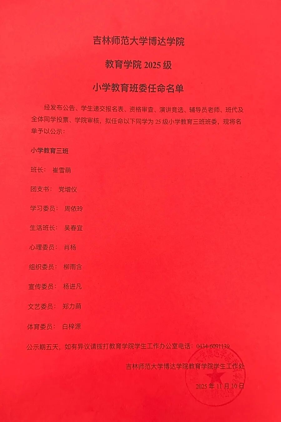 从入学起,各班辅导员与班代便同步开启了对新生的日常考察,经过两个月的观察记录、综合评估,再结合竞选当天同学们的现场演讲展示与班级民主投票,本次班委选举最终顺利收官。25级新生们也将在新班委的带领下,开启充满活力的大学生活。现将竞选结果公布如下: